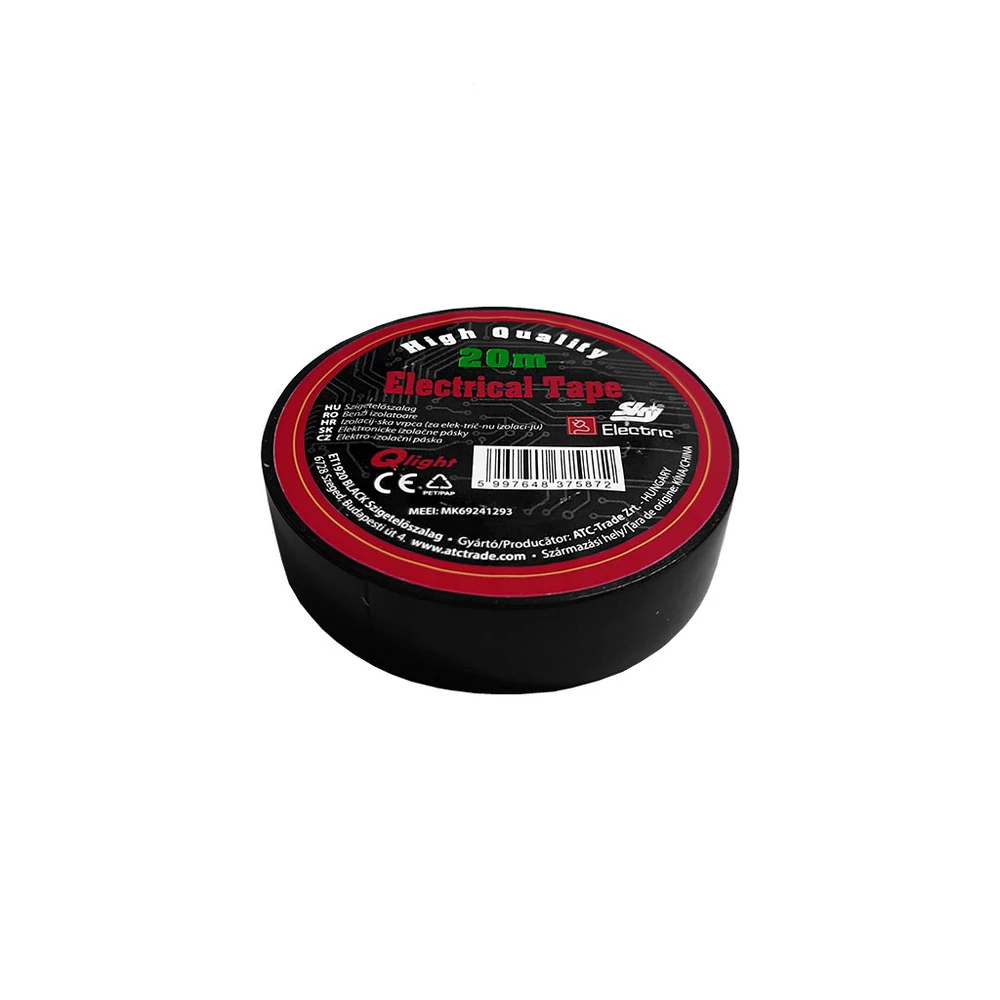Öntapadó PVC szigetelőszalag villanyszereléshez, jelöléshez stb. Nehezen gyullad. 19mmx20m-es fekete