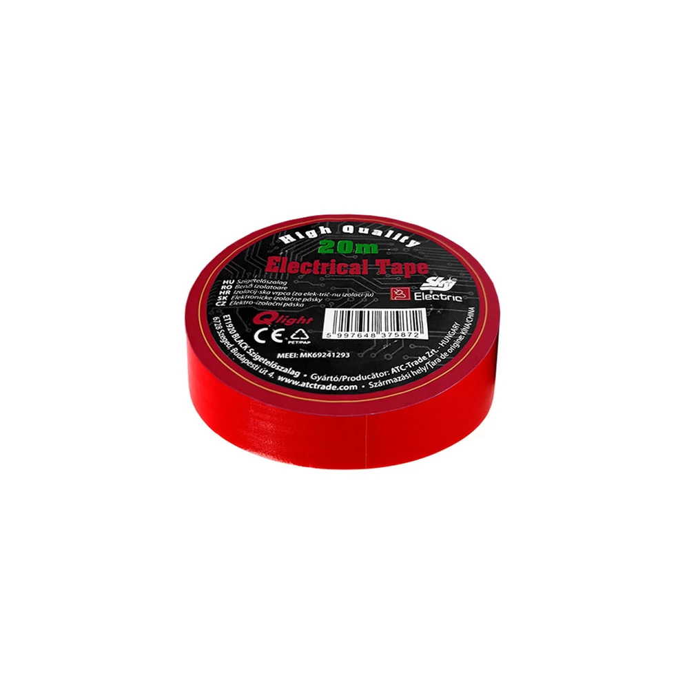 Öntapadó PVC szigetelőszalag villanyszereléshez, jelöléshez stb. Nehezen gyullad. 19mmx20m-es piros