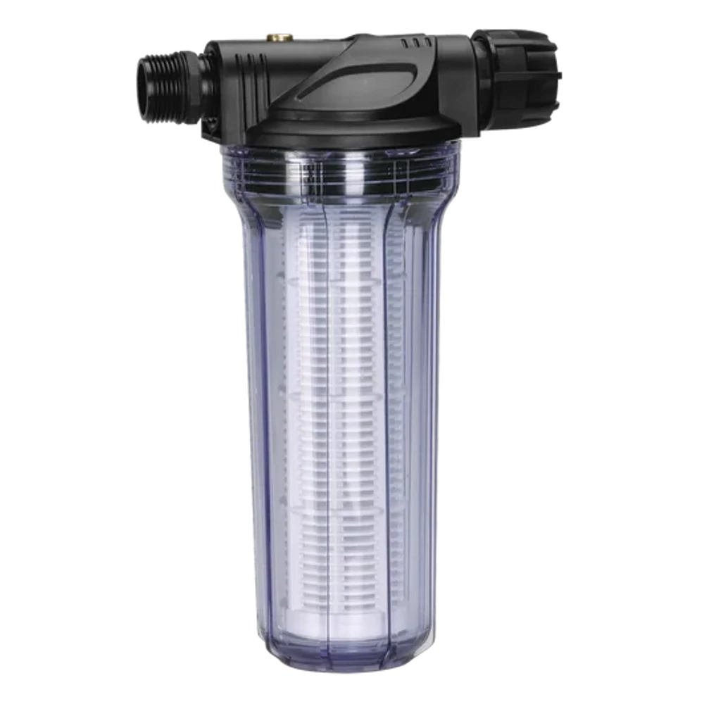 Előszűrő kerti szivattyú, házi vízmű vagy háztartási automata szivattyúhoz, beépíthető a készülék és a szívótömlő közé.