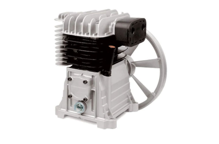 A kéthengeres kétfokozatú kompresszor pumpa acélöntvény sűrítőterekkel és kimagasló kopásállóságú speciális dugattyú gyűrűkkel és acél szeleplappal rendelkezik. Extra felületű hőleadó borda a tartályba vezető nyomócsövön elhelyezve.
